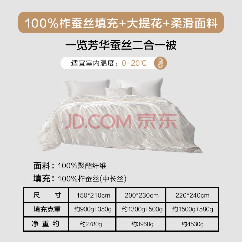 商品相册:水星家纺蚕丝被100%蚕丝冬被子冬季子母被二合一被芯约5.5斤150×210cm第