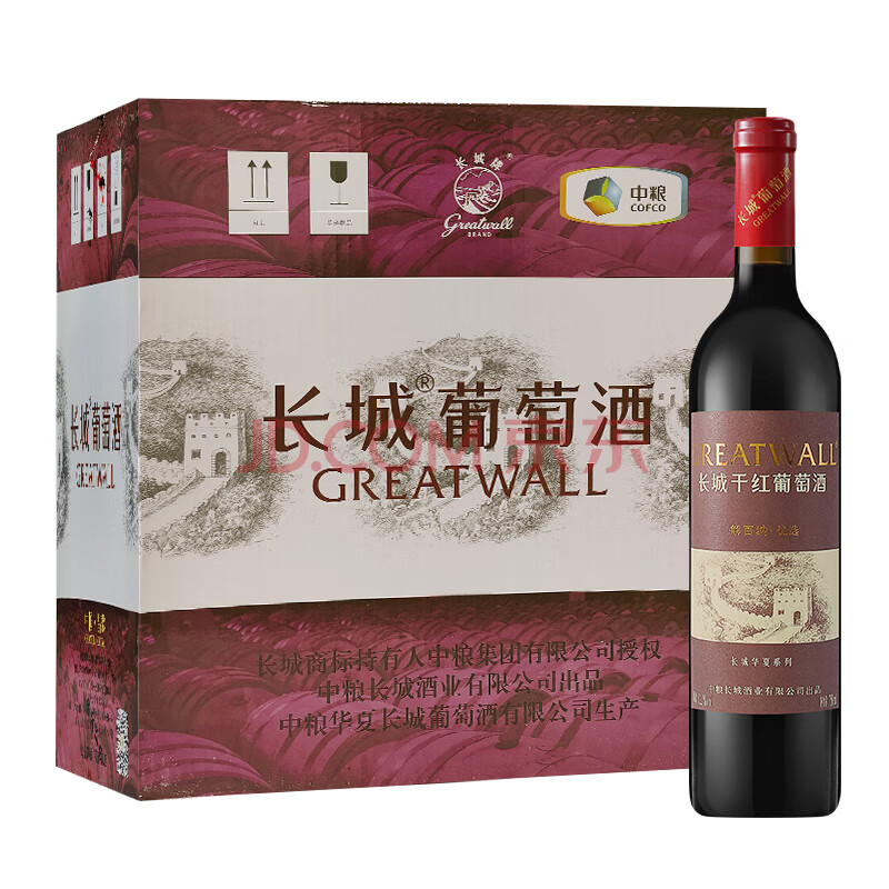 商品相册:长城华夏葡园解百纳优选干红葡萄酒750ml*12瓶整箱装红酒送礼第