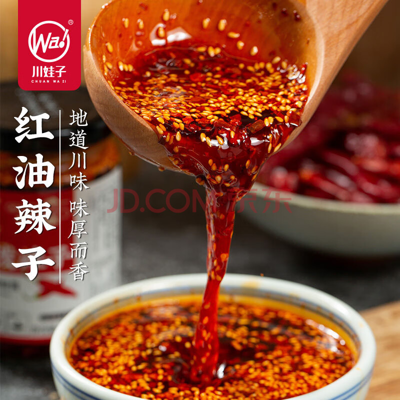 商品相册:川娃子 调味料 油泼辣子 凉拌汁 下饭拌菜料 辣椒酱 三次淋油辣椒油230g第