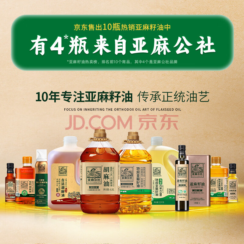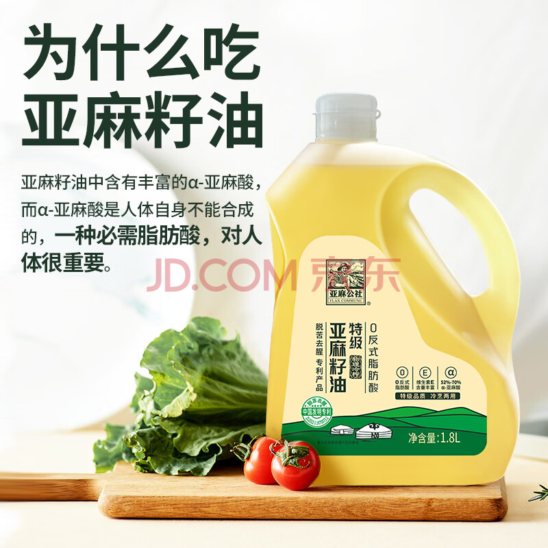 商品相册:亚麻公社0反特级【保真亚麻籽油】1.8L冷初榨亚麻油 含omega3食用油第