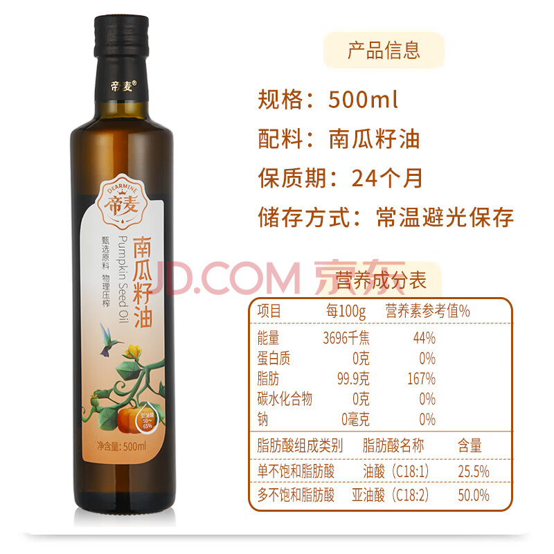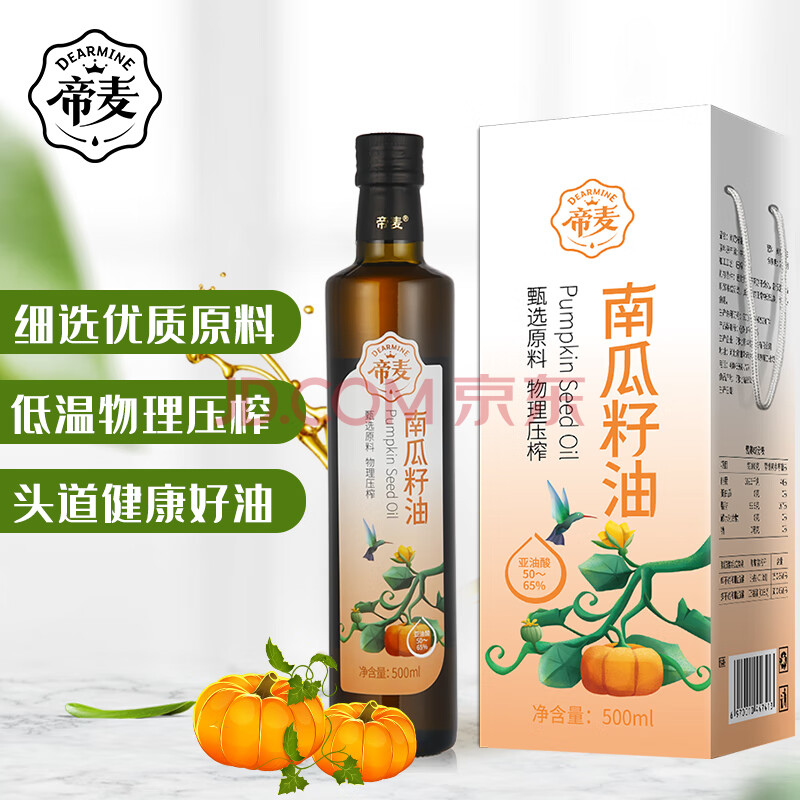 商品相册:帝麦 食用油 南瓜籽油 冷榨初榨 南瓜子油500ml春节年货礼盒 热门商品第