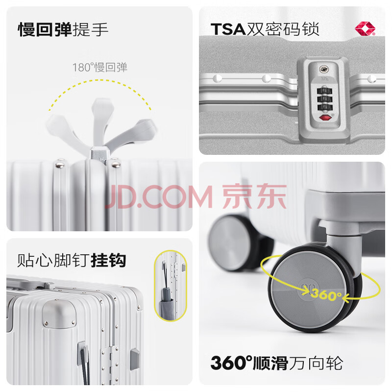 商品相册:90分行李箱26英寸铝框拉杆箱大容量旅行箱万向轮密码箱皮箱太空银第