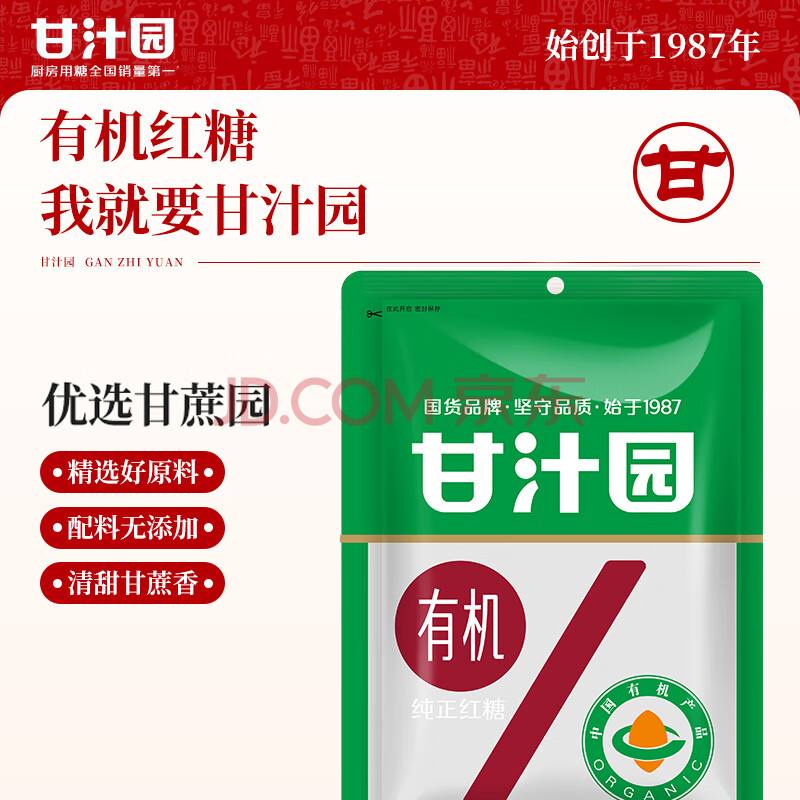 商品相册:甘汁园 红糖 有机纯正红糖300g 烘焙原料速溶冲饮调味第