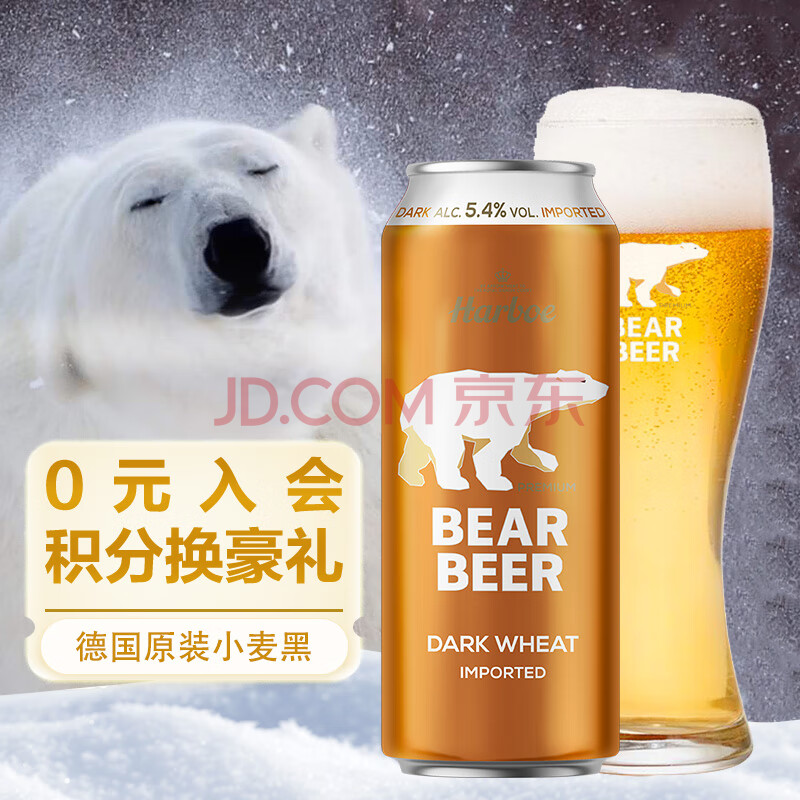 商品相册:豪铂熊(BearBeer)小麦黑啤酒500ml*24听 口感丰富 整箱装 德国原装进口踏春送礼第