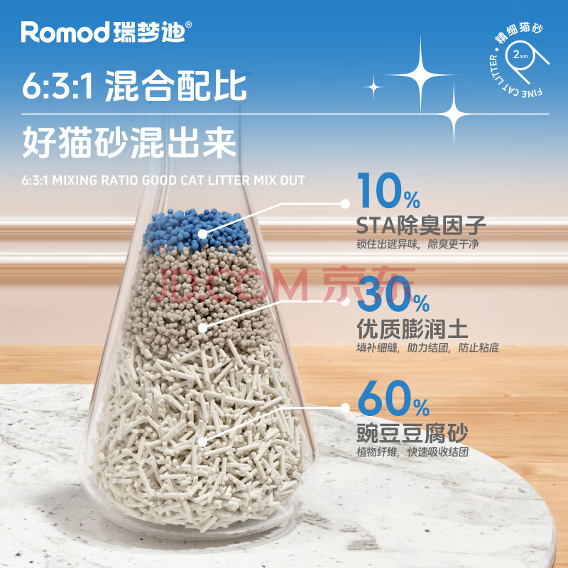 商品相册:瑞梦迪除臭豆腐混合猫砂2.5kg*5包高效结团低尘吸水可冲厕所 第