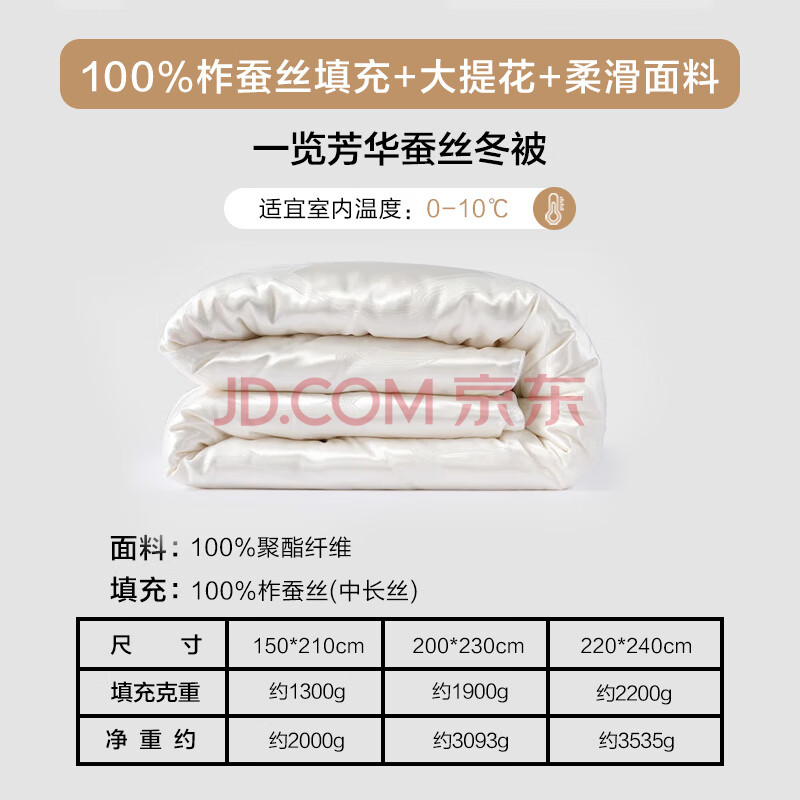 商品相册:水星家纺蚕丝被100%蚕丝冬被子冬季加厚保暖被芯被褥约6.1斤200×230cm第