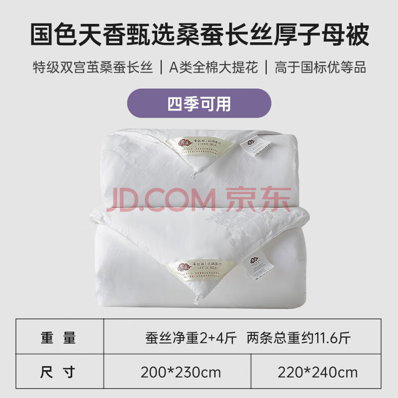 商品相册:慈云国色天香A类蚕丝被 甄选100%桑蚕长丝优等子母被11.6斤2*2.3m白色第