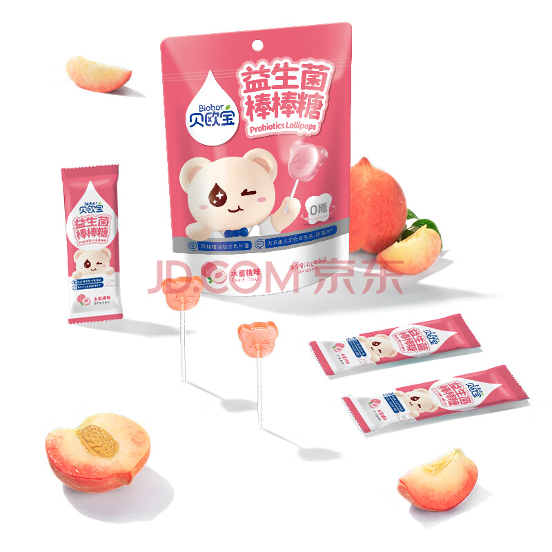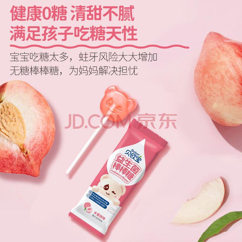 商品相册:贝欧宝 益生菌棒棒糖 42g 水蜜桃味 0糖 儿童营养糖果 儿童零食第