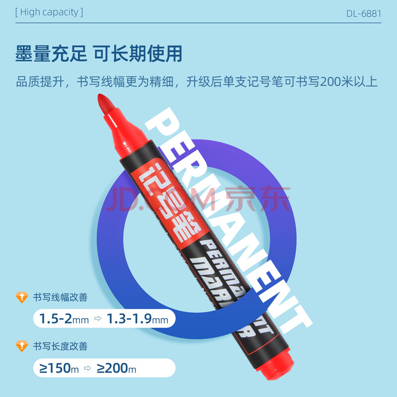商品相册:得力(deli)记号笔6881红色粗头物流油性大头笔速干防水不可擦记号笔办公用品10支装第