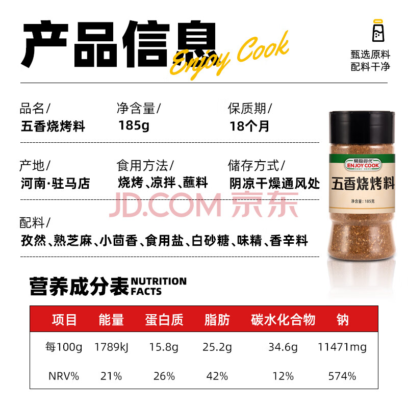 商品相册:易厨食代五香烧烤料 不辣烤肉烤串佐料新疆烧烤撒料空气炸锅调料瓶装185g第