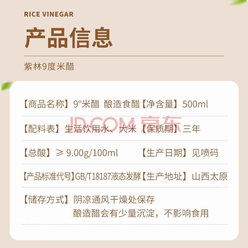 商品相册:紫林 醋 9度 米醋 500ml 0添加防腐剂 纯粮酿造食醋 山西特产第