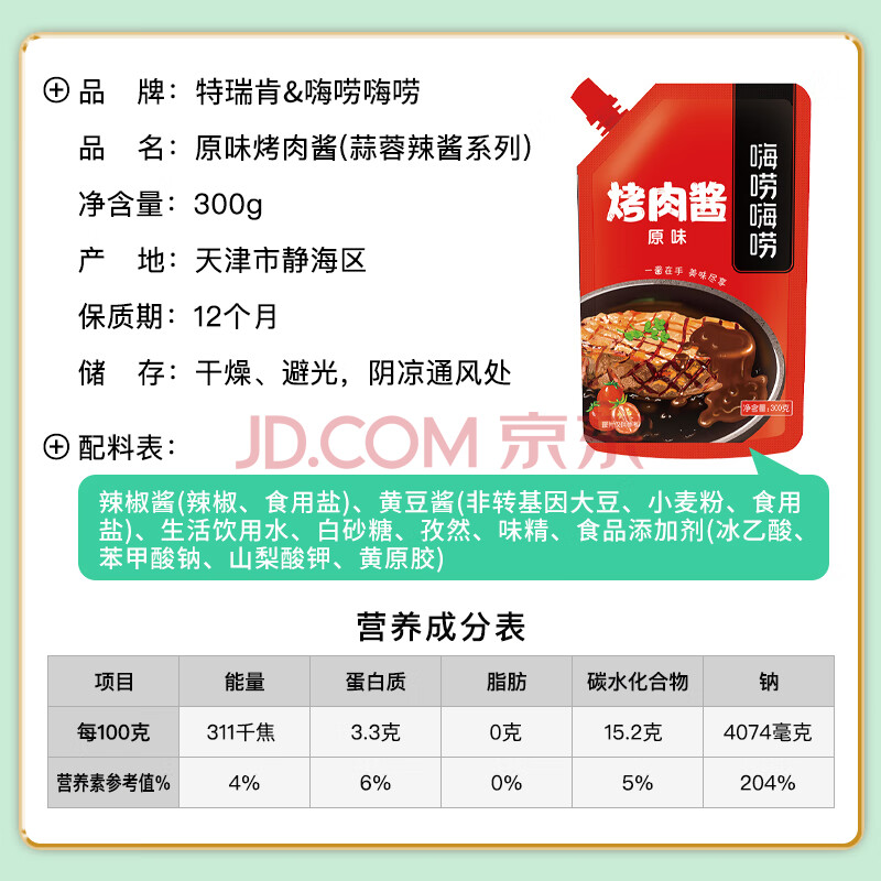 商品相册:特瑞肯(TRICON)原味烤肉酱烤肉串烧烤腌肉蘸拌饭酱拌煎炒面调味品300g送礼第