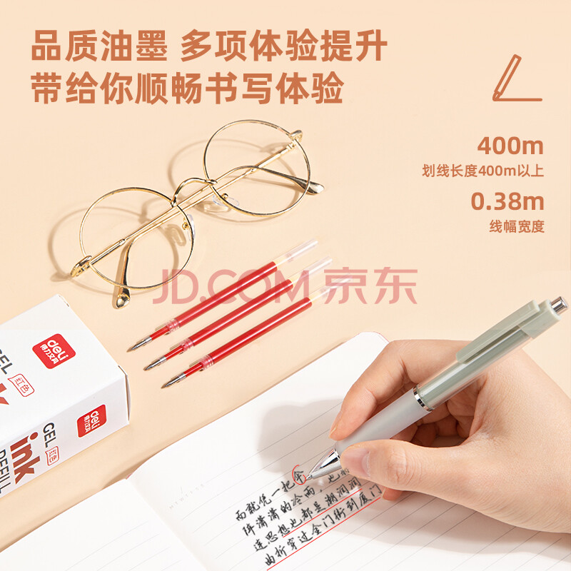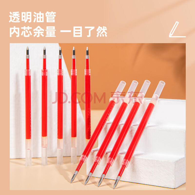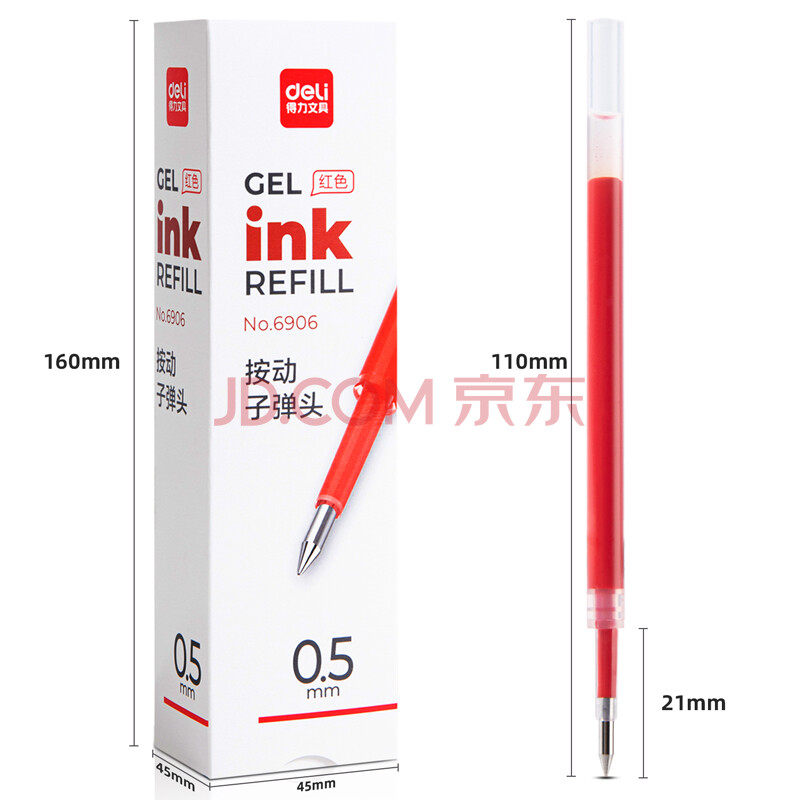商品相册:得力(deli)按动中性笔芯6906红色0.5mm水性笔签字笔替芯子弹头碳素水笔芯20支装第