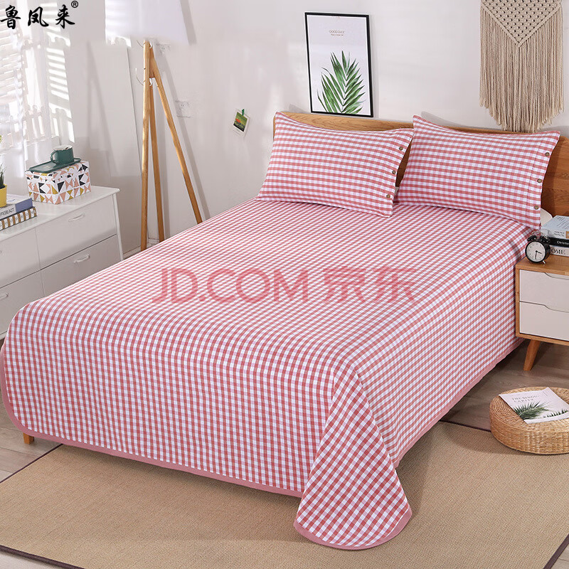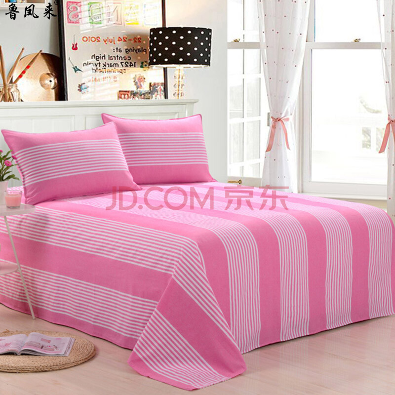 商品相册:鲁凤来. 老粗布三件套 双人床加厚床单+枕套一对200*230cm床单 浅灰白条第