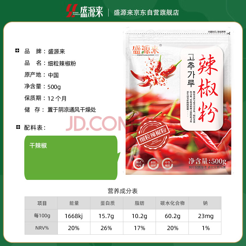 商品相册:盛源来细辣椒粉1斤 香辣烧烤火锅蘸料韩式东北泡菜腌料辣椒面拌菜腌肉第