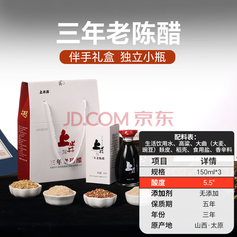 商品相册:上水井 醋 山西特产 调味品伴手礼 三年老陈醋小白盒150ml*3盒 礼品礼盒第