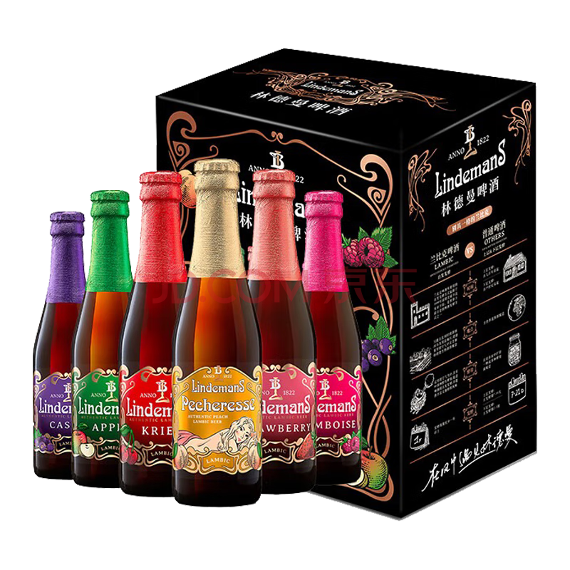 商品相册:Lindemans林德曼果味缤纷礼盒250ml*6瓶 比利时进口 果味精酿 京东自营第