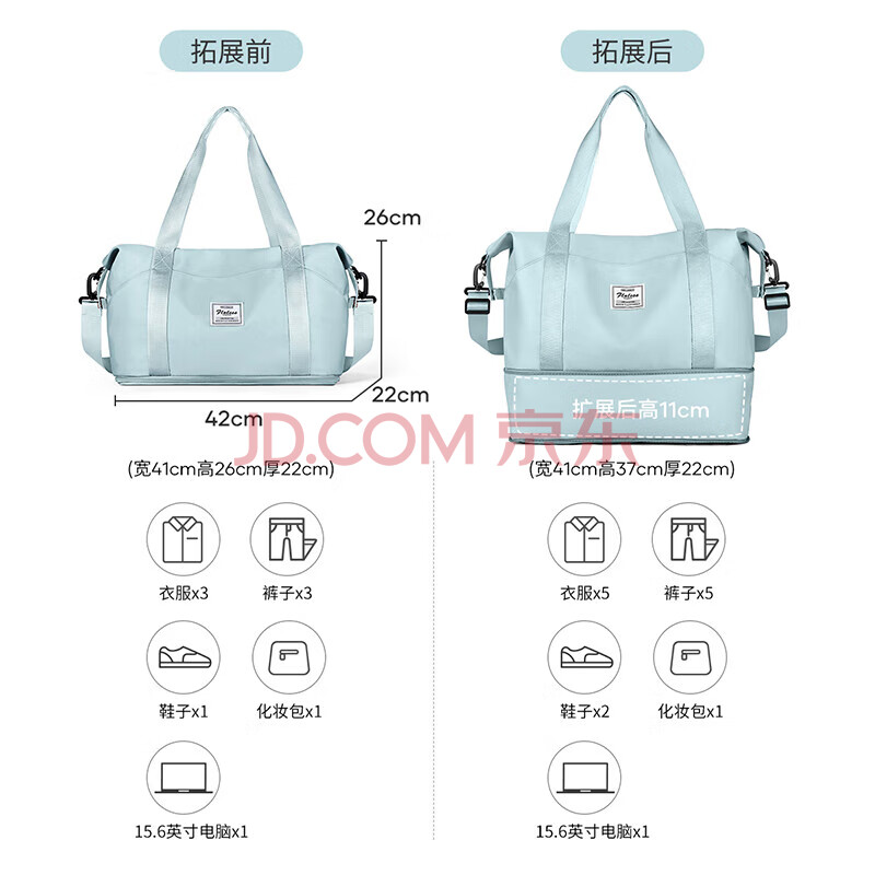 商品相册:Landcase手提旅行包女大容量行李包可扩容收纳包干湿分离健身包2104浅蓝色第