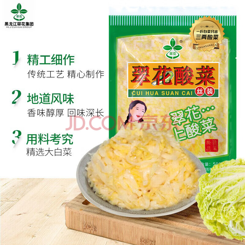 商品相册:翠花 东北酸菜(丝)500g*2袋酸菜饺子馅炖肉酸菜第