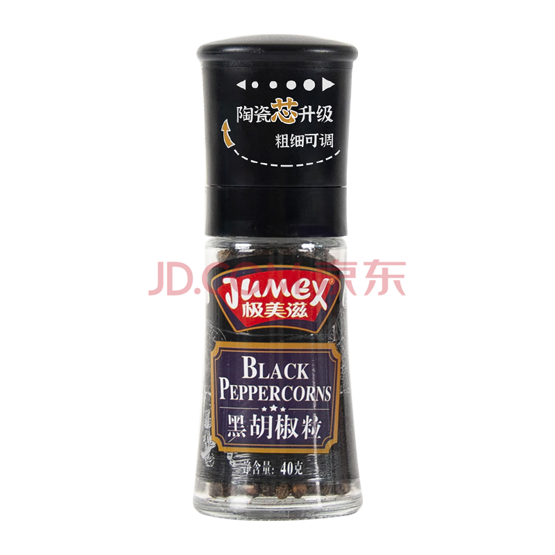 商品相册:极美滋黑胡椒粒40g 研磨瓶 自带手动研磨器健身餐鸡胸肉烧烤调料香辛料第