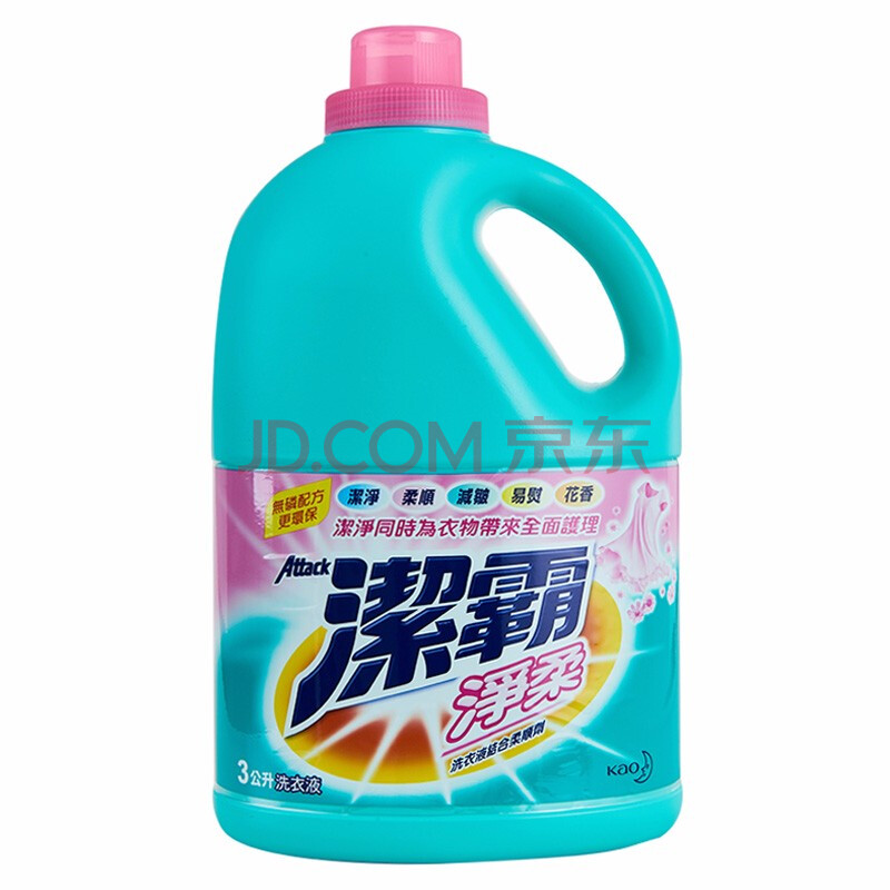 商品相册:花王(KAO)进口洁霸洗衣液3L净柔大瓶装 添加柔顺剂 原装进口洗衣剂第