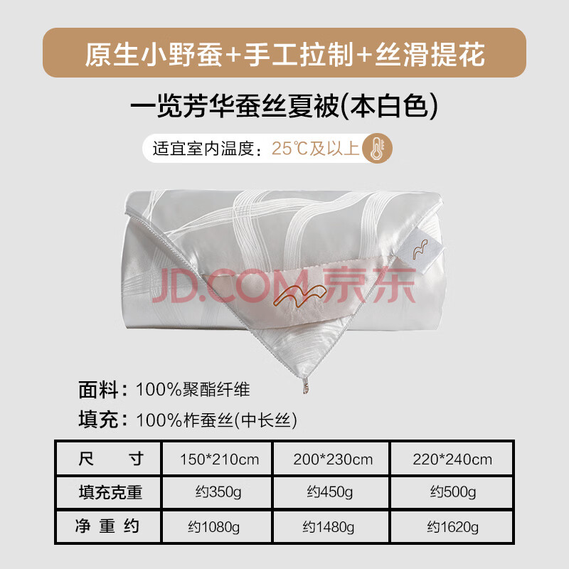 商品相册:水星家纺蚕丝被子空调被夏凉被子蚕丝凉感被夏被芯约2.1斤150*210cm第