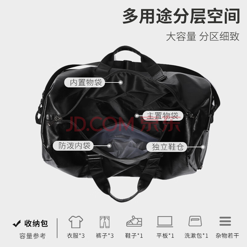 商品相册:易旅旅行包行李袋运动健身包男款手提大容量出差轻便干湿分离旅行背包第1张/共7