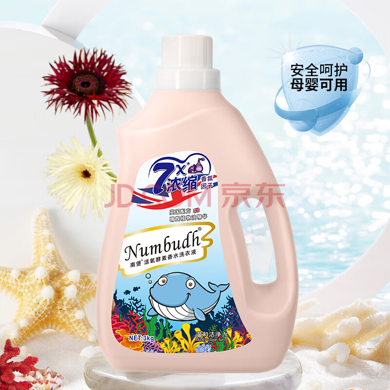 商品相册:南堡(Numbudh)活氧酵素香水洗衣液6斤 手洗机洗去渍洗衣凝露持久留香孕婴可用第