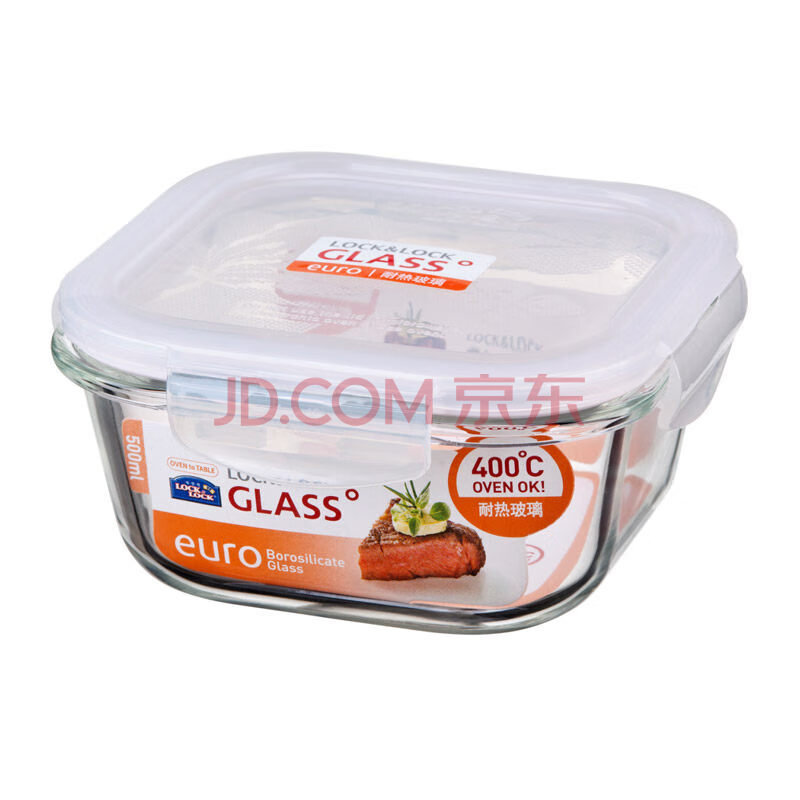 商品相册:乐扣乐扣(LOCK&LOCK)格拉斯耐热玻璃保鲜盒 微波炉便当盒 长方形LLG428 630ml/正方形LLG214 500ml 两个装第