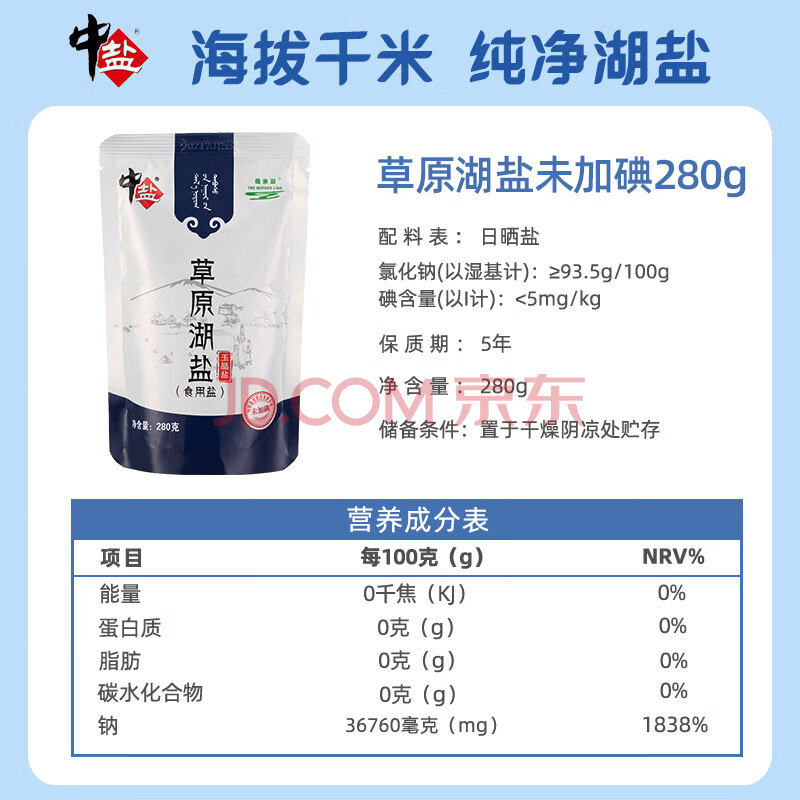 商品相册:中盐 草原湖盐280g*2【未加碘】玉晶盐 一级湖盐 吃好盐选中盐第