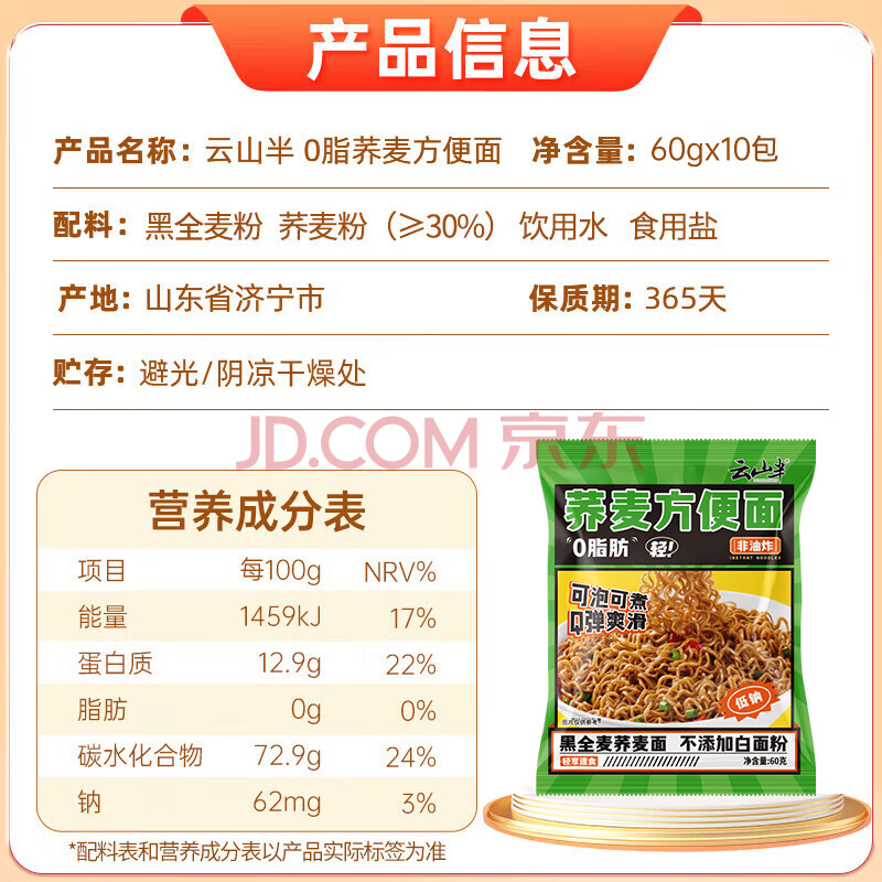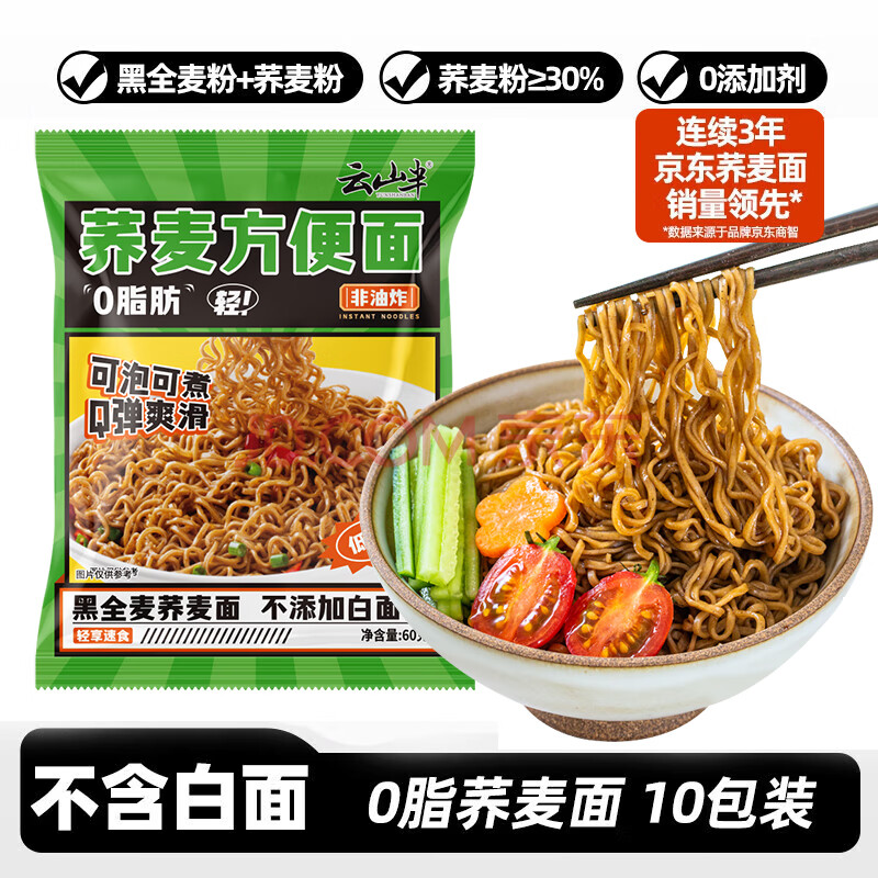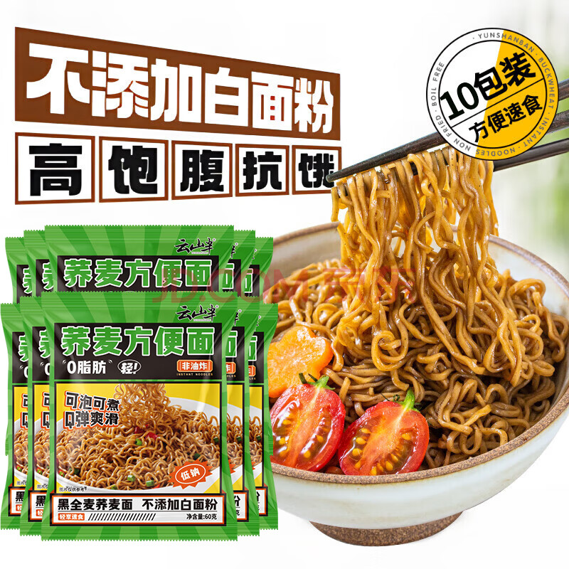 商品相册:云山半 荞麦方便面60g*10包 0脂肪拌面冷面条 健身代餐速食免煮挂面泡面第