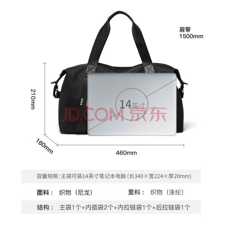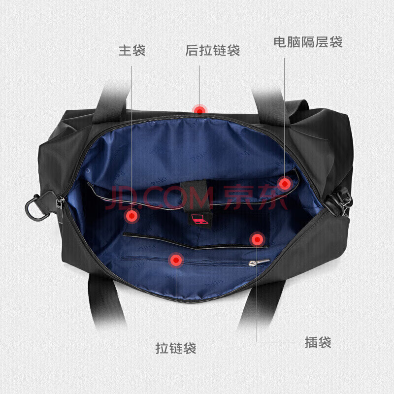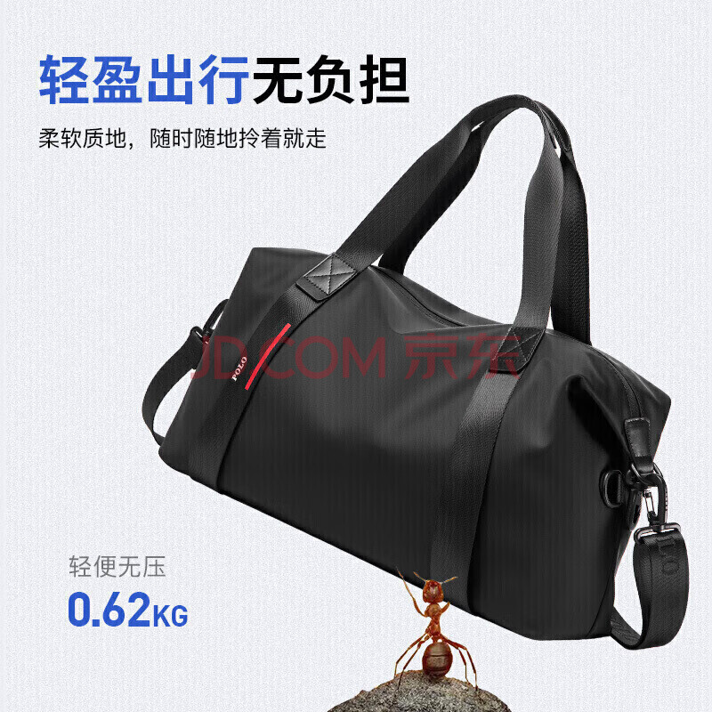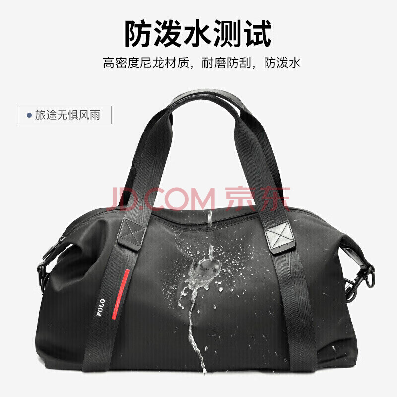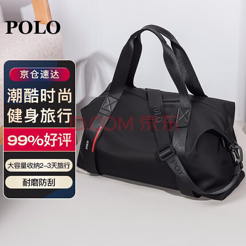 商品相册:POLO旅行包男士大容量手提包多功能健身包出差行李袋商务旅行袋 黑色第