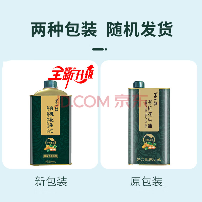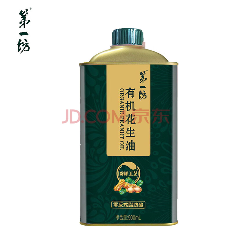 商品相册:第一坊 有机花生油900ml 食用油 冷榨工艺 至纯净低油烟 铁桶装第