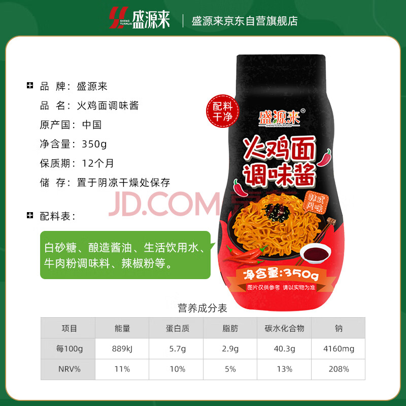 商品相册:盛源来韩式火鸡面酱料350g正宗超辣拌面辣椒酱甜辣酱方便面下饭酱香辣酱第