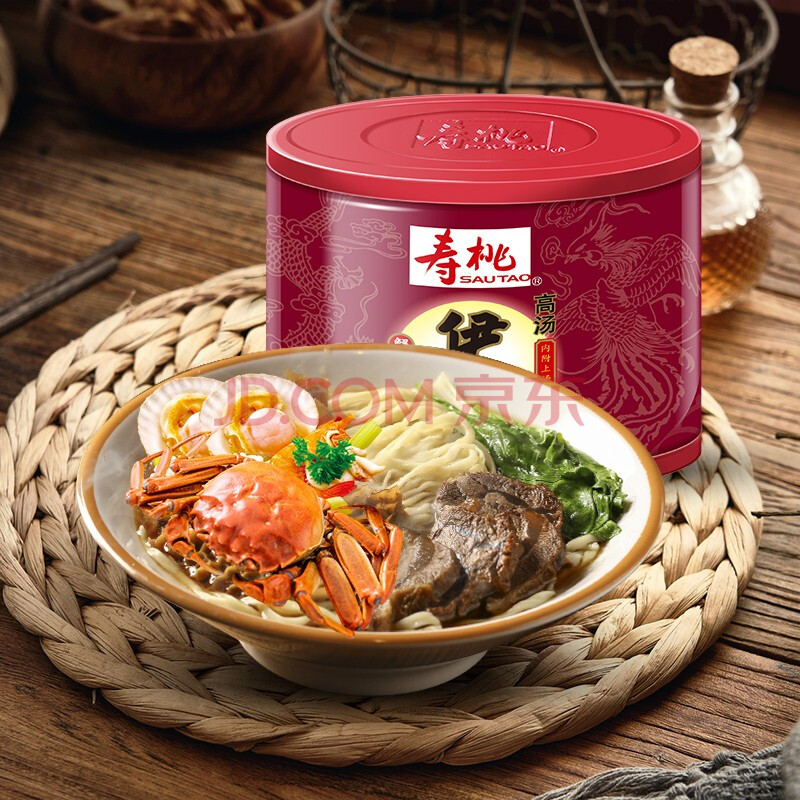 商品相册:寿桃牌 高汤伊面 蟹皇元贝汤味 内含调味包 240g/盒第