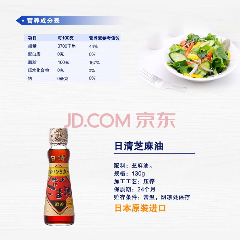 商品相册:日清 食用油 芝麻油 130g 日本原装进口 压榨工艺第