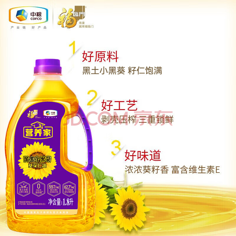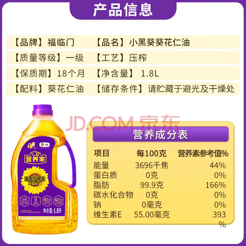 商品相册:营养家 食用油 黄金小黑葵 葵花仁油1.8L 物理压榨一级 第