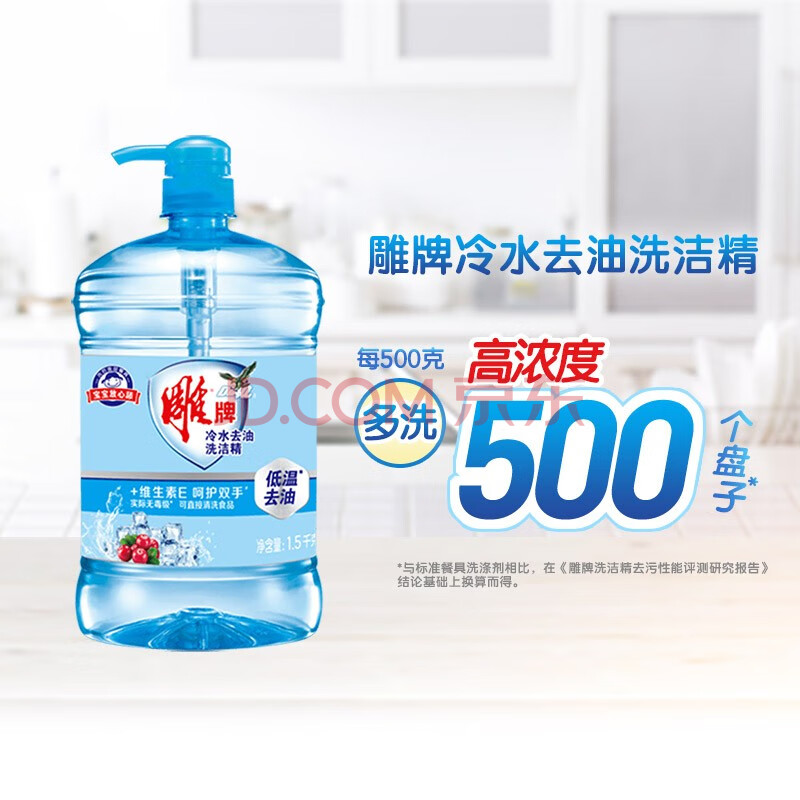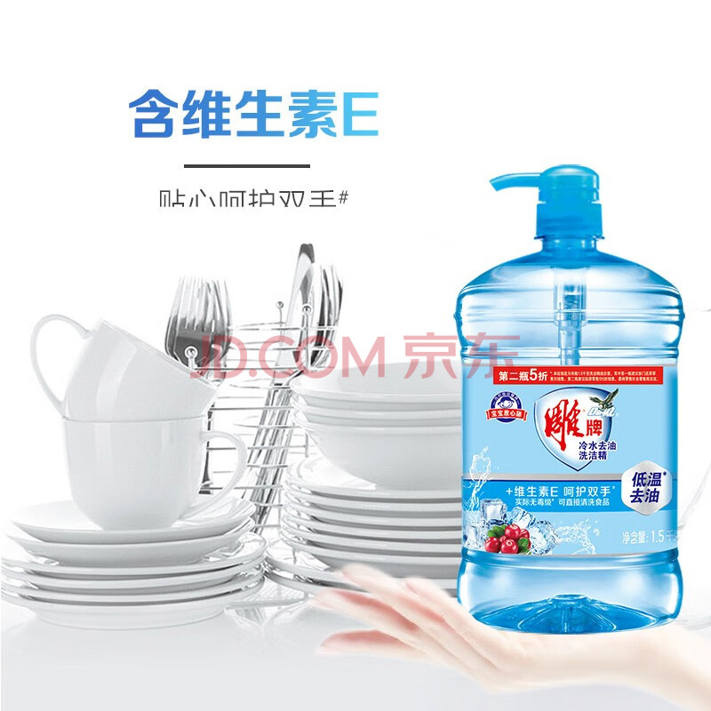 商品相册:雕牌冷水去油洗洁精1.5kg*2 清新水果香 低温去油 维E护手第