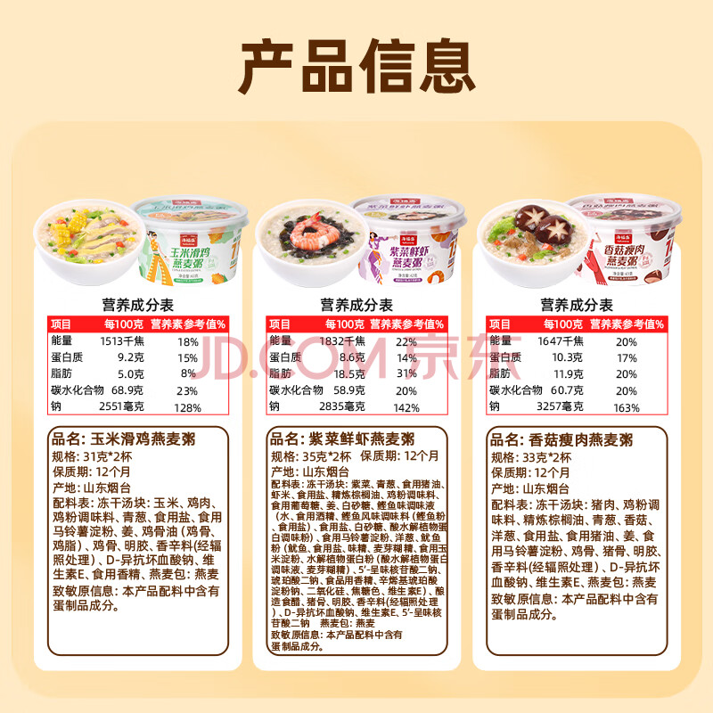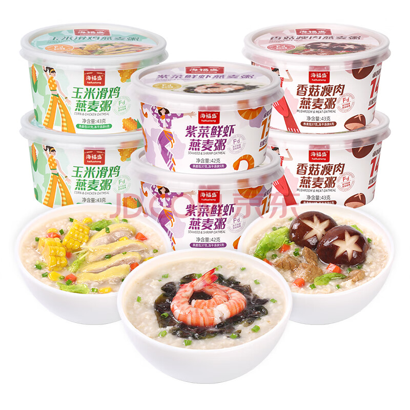 商品相册:海福盛方便食品速食粥懒人食品早餐高膳食燕麦冻干粥3味6杯256g第