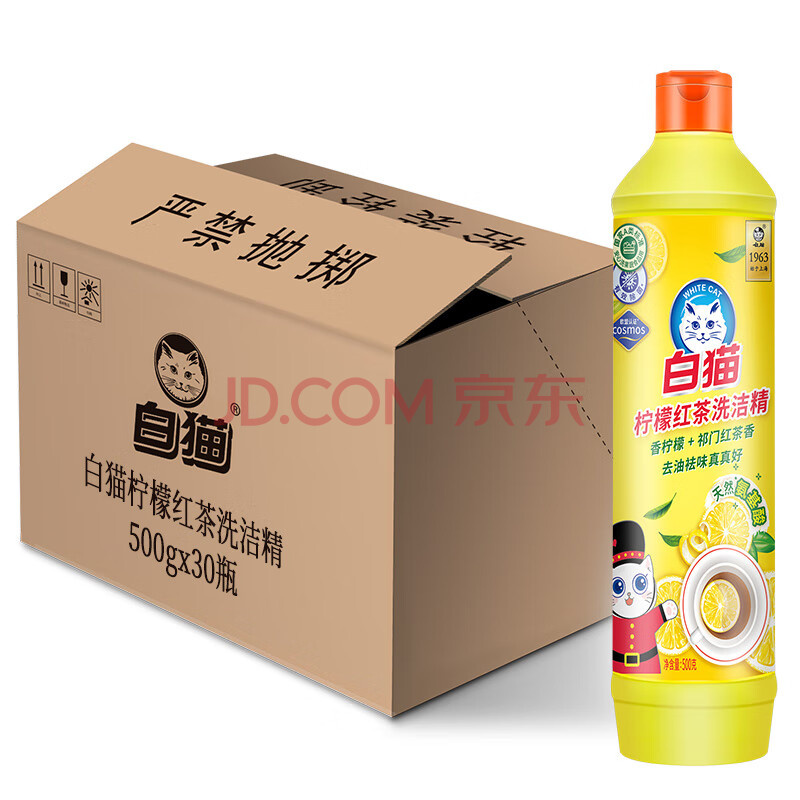 商品相册:白猫 柠檬红茶洗洁精500g*30瓶(整箱装)A类食品用去油祛味 洗洁精第