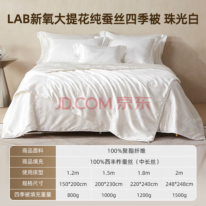 商品相册:梦洁家纺蚕丝被子母被二合一新氧提花被芯珠光白填充物约1120g 150*200cm第
