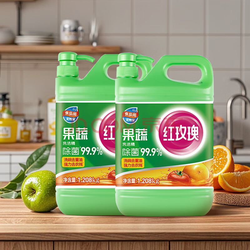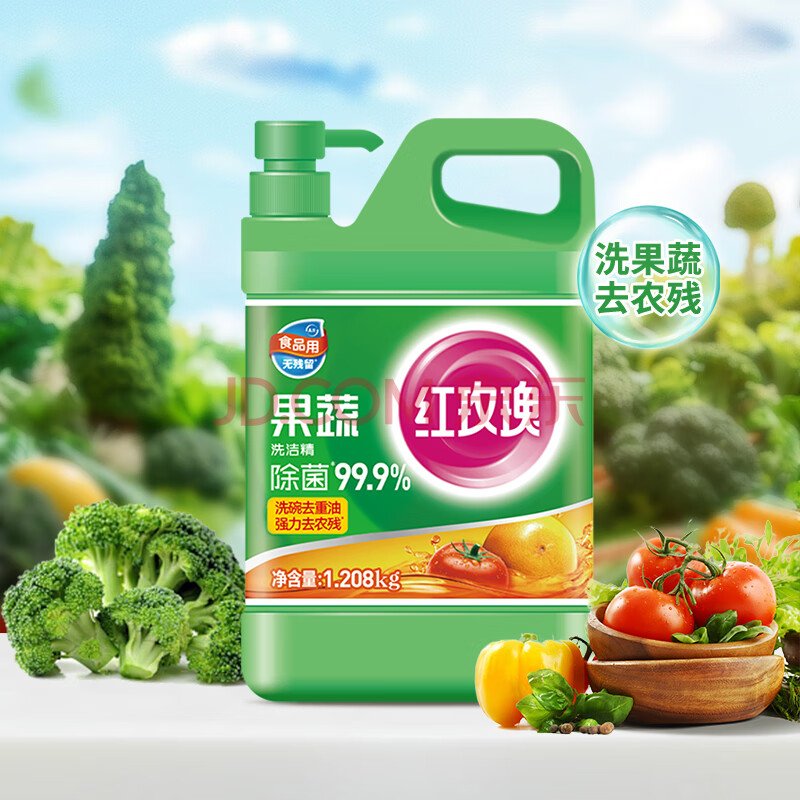 商品相册:红玫瑰果蔬洗洁精1.208kg*1洗蔬果去农残冷水去油A类食品用标准第