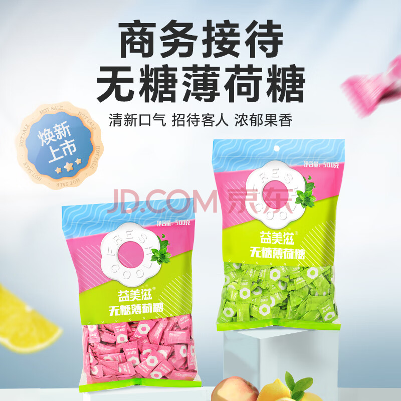 商品相册:I'MINT益美滋 无糖薄荷糖 500g*2 口香清新口气 招待糖 柠檬+水蜜桃味第