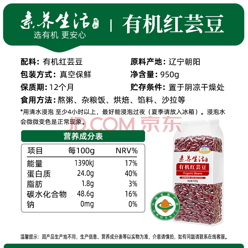 商品相册:素养生活有机红芸豆1.9斤 芸豆 红腰豆 大红豆 红菜豆 饭豆 五谷杂粮第
