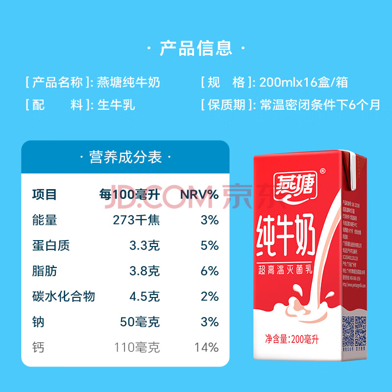 商品相册:燕塘 全脂纯牛奶 200ml*16盒 3.3g乳蛋白 礼盒装 营养早餐奶第