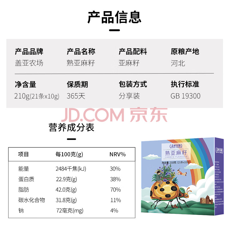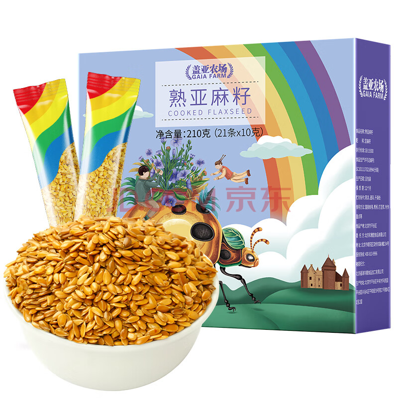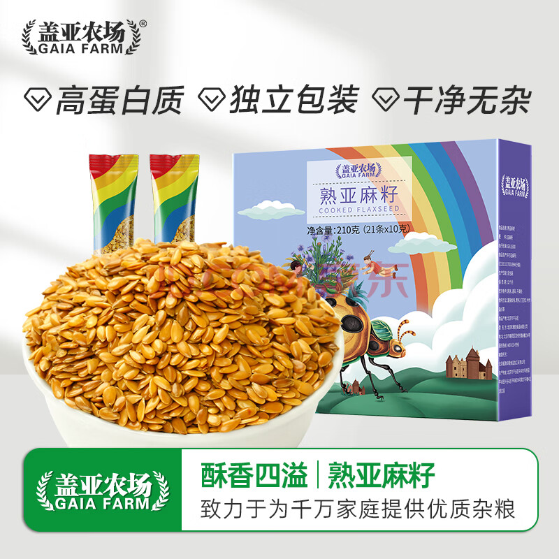 商品相册:盖亚农场熟亚麻籽210g 低温烘焙 饱腹代餐 独立包装10g*21条第