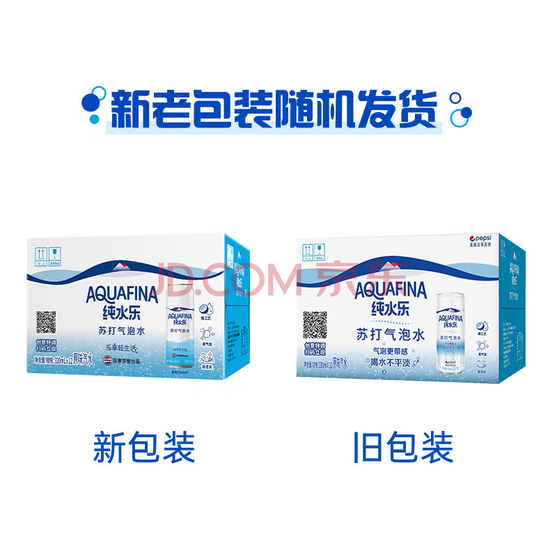 商品相册:百事可乐纯水乐AQUAFINA无糖0脂0卡苏打气泡水汽水饮料330ml *12听 随机发第