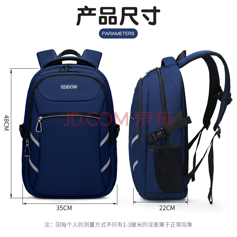 商品相册:Edison初中生书包轻便反光双肩包防泼水高中学生背包 200823-3G深蓝第