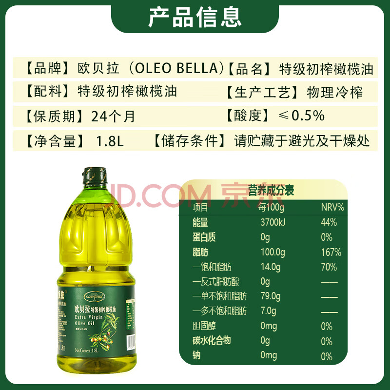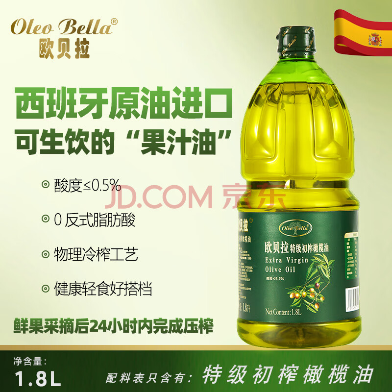 商品相册:欧贝拉(Oleo Bella) 【保真橄榄油】特级初榨橄榄油1.8L西班牙原油进口食用油 凉拌第
