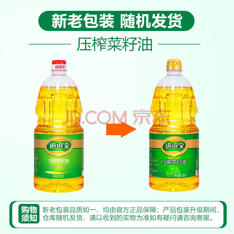 商品相册:道道全菜籽油 食用油 压榨菜籽油 物理压榨非转基因 1.8L*1桶第